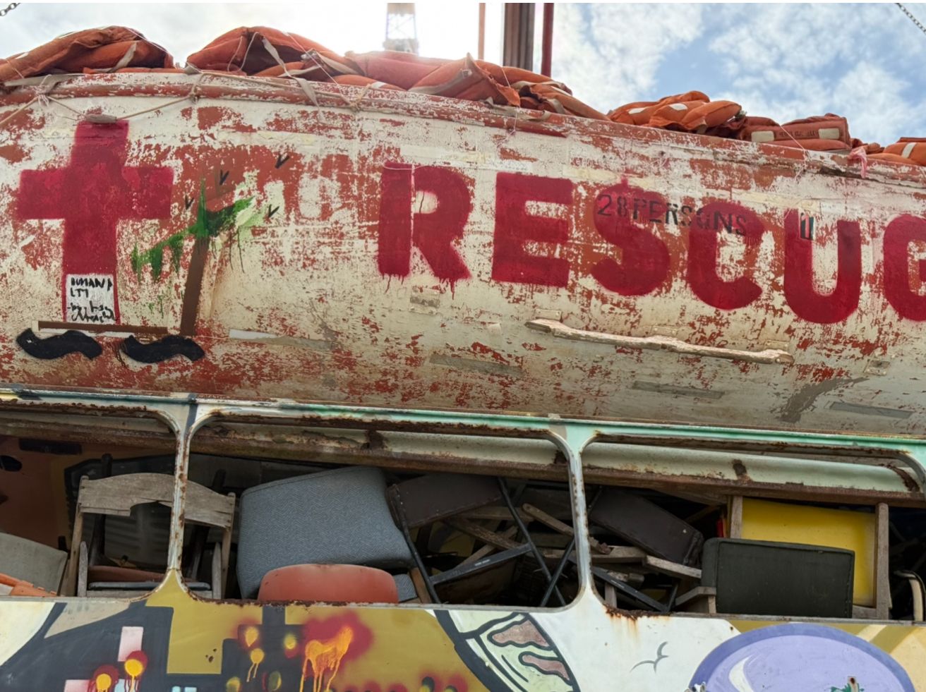 Siyah renkte “ ~ ~ “ işareti ve “Rescue Boat” ikilemi