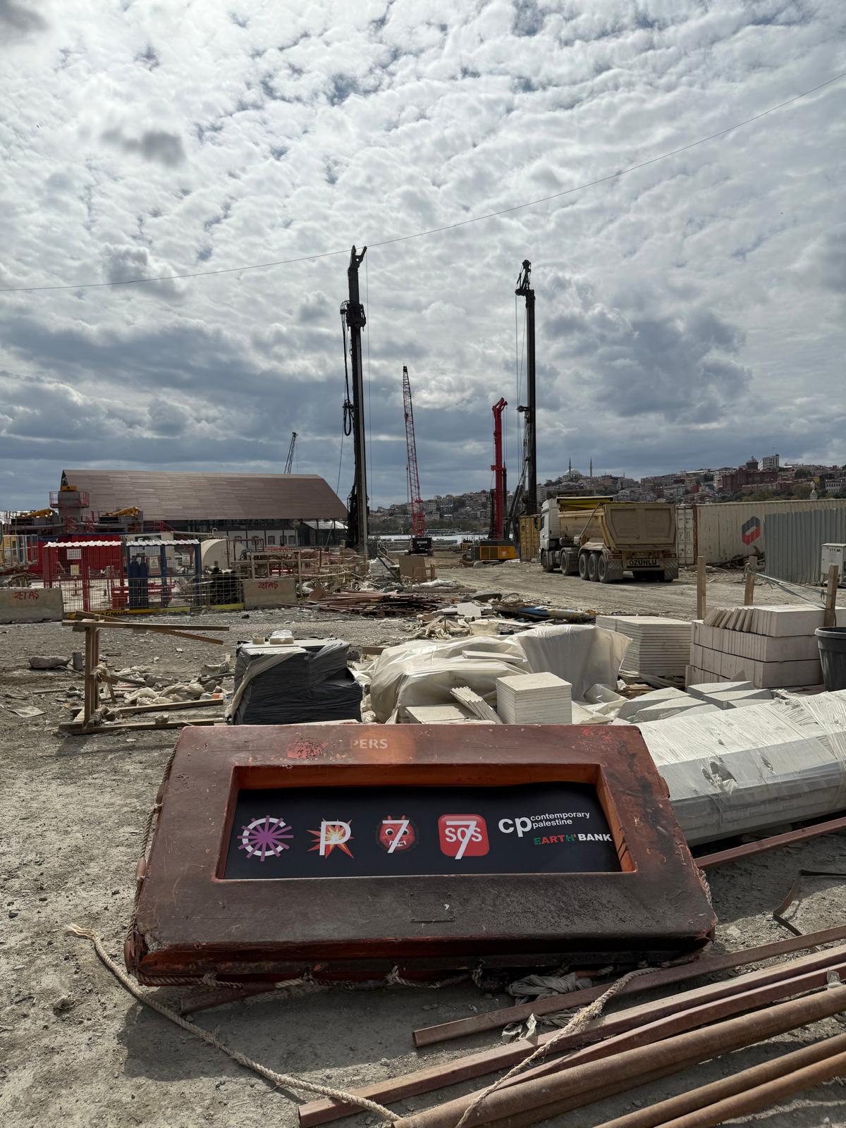 T24’e konuşan sanatçı, Contemporary İstanbul’un bu sene gerçekleşen etkinliğinde Filistin’e ilişkin olarak yeterince eser verilmemesine tepki olarak Tersane İstanbul’da yapılan fuara gizlice girip sanat eserini bıraktığını ifade etti. Sanatçı, eserde tepki olarak yazılan “Contemporary Palestine” yazısının güvenlik görevlileri tarafından fark edilmesi sonucunda eserinin “kaçak” olduğunun anlaşıldığını ve oradan ayrıldıklarını ifade etti.