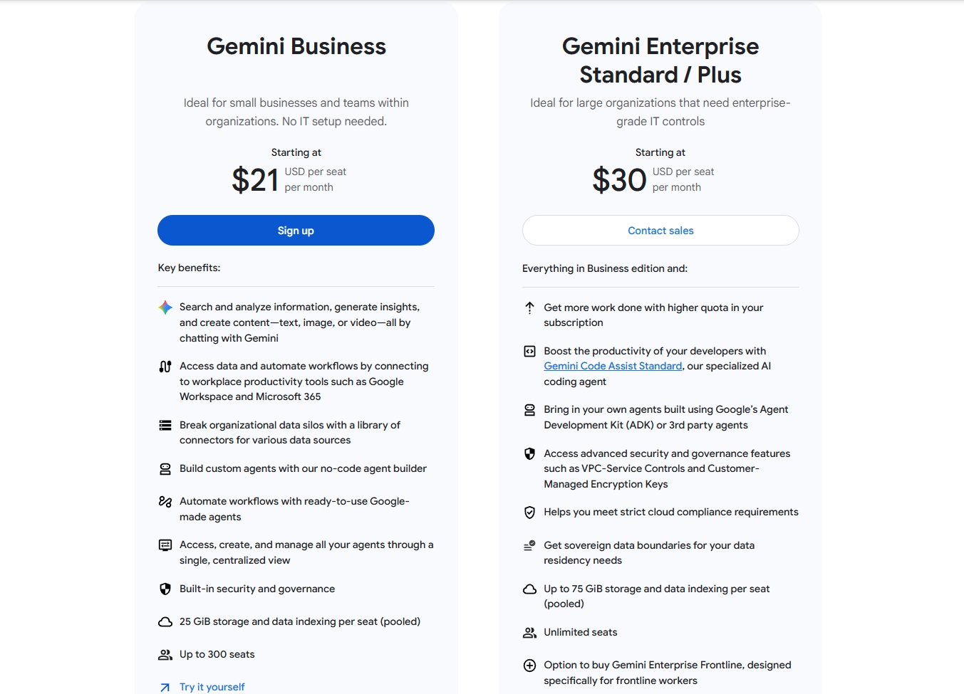 Yeni hizmet Gemini Enterprise ve Gemini Business olmak üzere iki farklı düzeyde sunulacak. Gemini Enterprise, büyük ölçekli kurumları hedeflerken aylık kişi başı 30 dolar fiyata sahip olacak. Daha küçük ölçekli şirketler için hazırlanan Gemini Business aboneliğinin ücreti ise aylık kişi başı 21 dolar olarak belirlendi. Her iki paket de çalışanlara Box, Microsoft ve Salesforce gibi platformlardaki verileri kullanarak kendi yapay zeka ajanlarını oluşturma imkanı sağlıyor. Üstelik Gemini Enterprise ve Gemini Business, kodlama bilgisi gerektirmeden kullanılabiliyor.