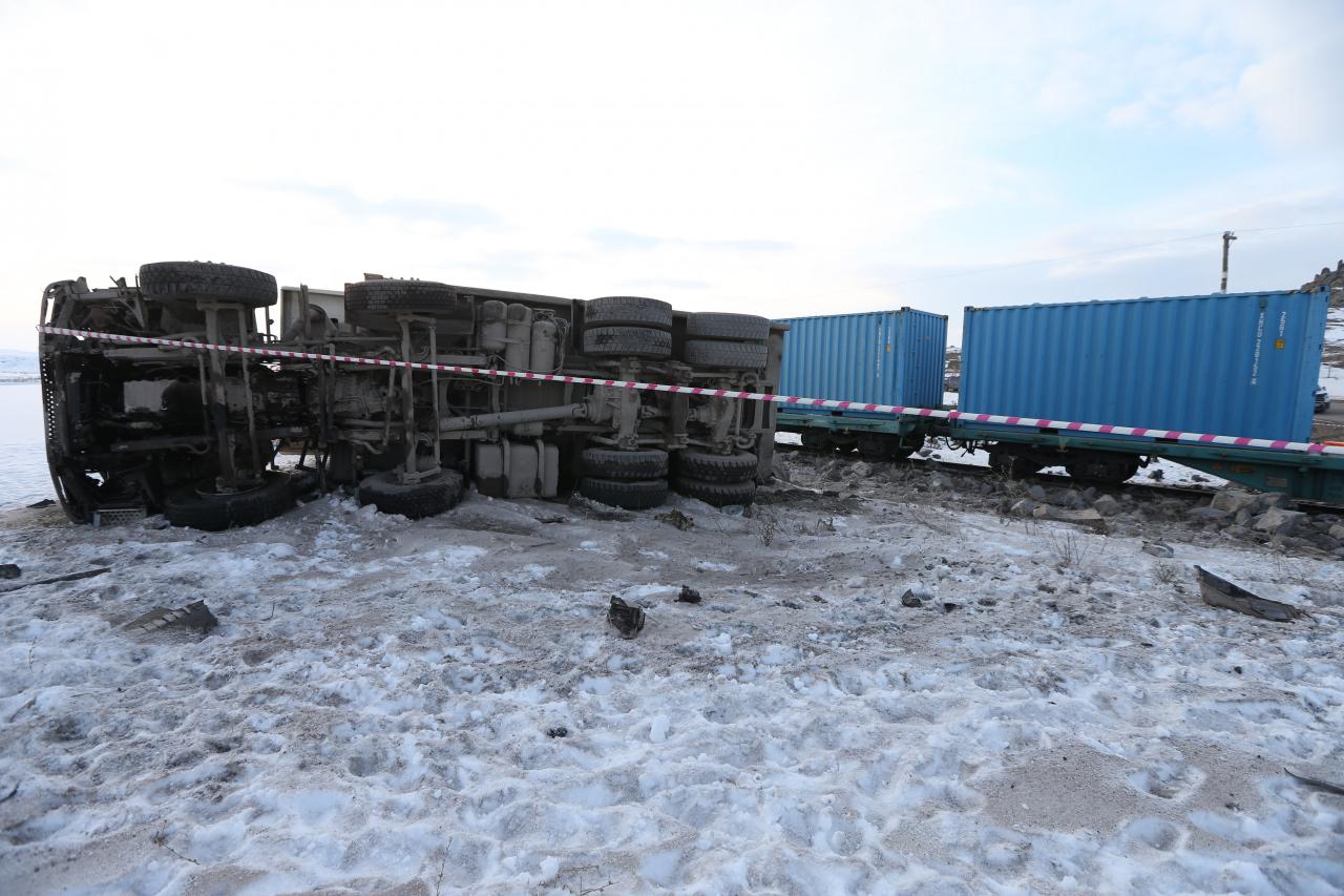 Kars’ta korkunç tren kazası: Kamyon sürücüsü öldü!