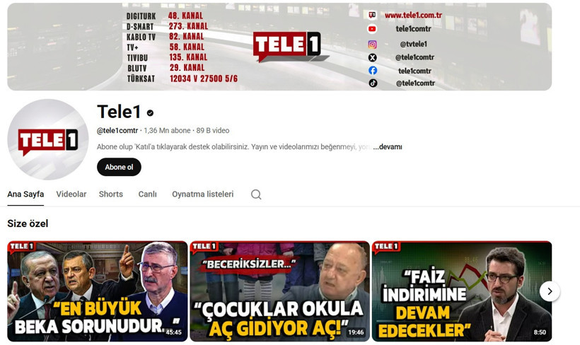 Kayyum atanan TELE 1’in YouTube hesabı tekrar açıldı: Eski içerikler duruyor
