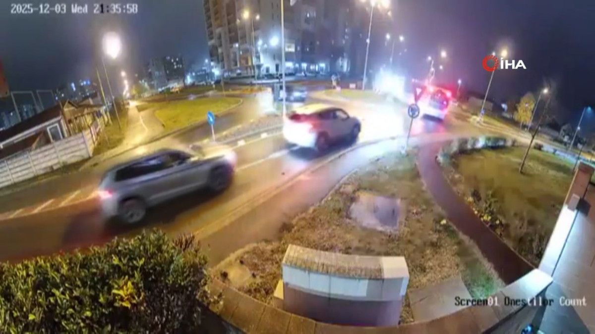 Oradea kentinde hızla ilerleyen bir araç, kavşağa çarparak havalandı.