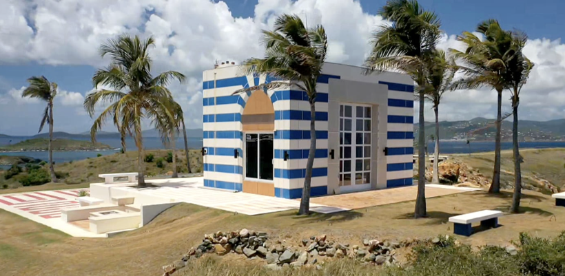 Dev bir kutuyu andıran ve ilk halinde altın rengi bir kubbeyle kaplı olan bina, yıllar boyunca yoğun spekülasyonlara ve internet komplo teorilerine konu oldu. Mavi çizgili yapı, Epstein’ın 1998’de 7,95 milyon dolara satın aldığı Little St. James Adası’nın güneydoğu ucunda, manzaraya hakim bir noktada bulunuyor. Yapının çevresi, kırmızı şekillerle süslenmiş parlak beyaz bir terasla çevrili. Yerel halk, binanın altın kubbesinin 2017’deki Maria Kasırgası sırasında uçtuğunu söylüyor.